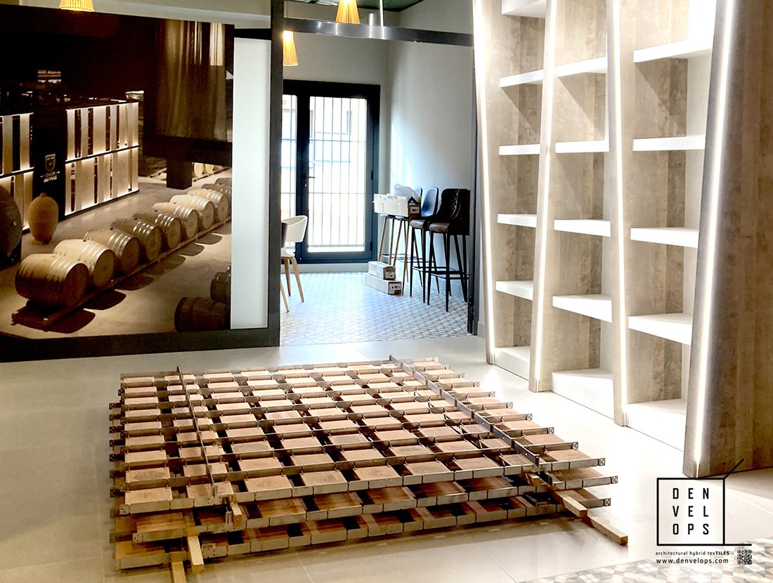 The small project, installed in “Celler Figueres”, is the debut and demonstration that Glazed, and all type of Tiles with small thickness, finally can be use with Denvelops off-site industrialized construction systems. A new opportunity that stand-up a new way to design with this type of materials with fewer thickness. Want to taste?