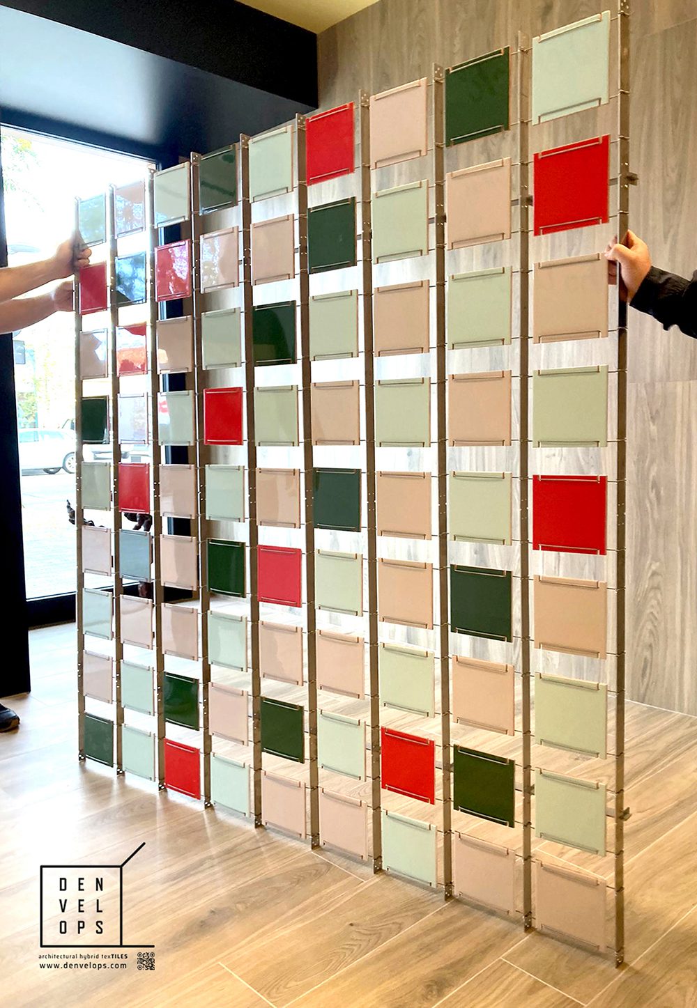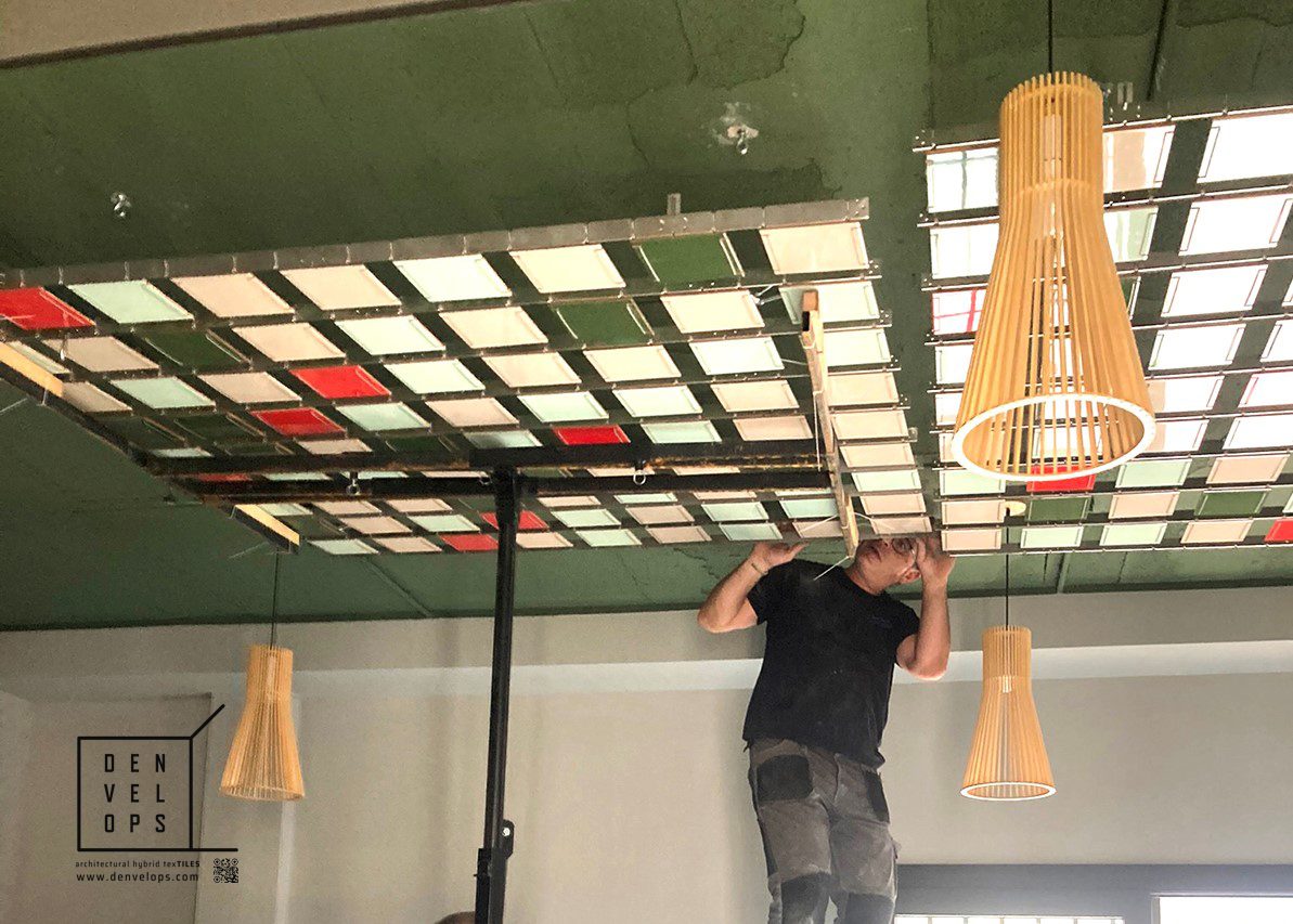 To the described advantages, we should add another one: the possibility of illuminating in a textured way (one led per piece) the hybrid texTILES, a new programmable lighting system that Denvelops has recently made available to Architects and Designers.