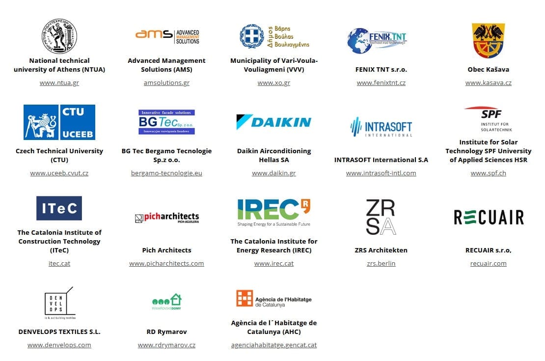 El consorcio multidisciplinar PLURAL agrupa a 18 socios con experiencia en: materiales avanzados (Advanced Management Solutions, prefabricación y ventanas de ahorro energético (BG Tec Bergamo Tecnologie), integradores de sistemas y monitorización (The Catalonia Institute for Energy Research – IREC, RECUAIR) , municipios (Vari-Voula-Vouliagmeni, Kašava, Agència de l’Habitatge de Catalunya), arquitectos (Pich Architects, ZRS Architekten), sistemas de energía (Czech Technical University in Prague, Institute for Solar Technology SPF, NTUA, DAIKIN) , fachada productores de paneles (DENVELOPS, RD Rymarov), empresa – financiación-marketing (FENIX TNT), LCA y certificación (The Catalonia Institute of Construction Technology – ITeC), informática (Intrasoft International).